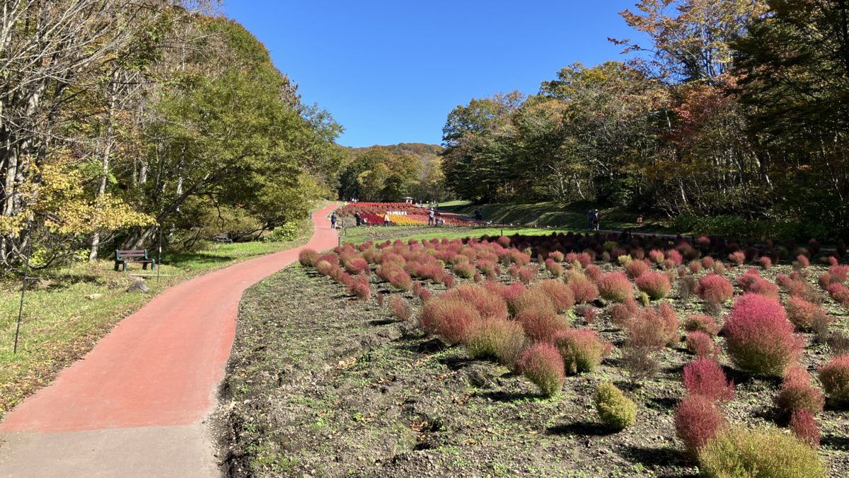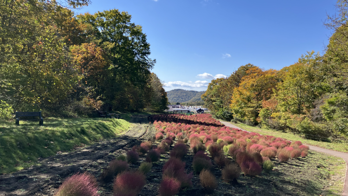 「コキアガーデン」といっても「ラベンダーパーク」と同じ場所なんですが、あそこなら標高も高いし、もしかしたら紅葉も見られるかも・・